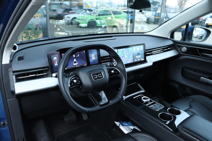 Origineel Nederlands geleverde Aiways U5 63kwh Showroom, NAP-kilometerverslag aanwezig. Deze U5 is o.a. voorzien van: lederen bekleding, volledige led verlichting, elektrisch verstelbare voorstoelen, 360 rondomzichtcamera, Apple carplay, key-less entry en start, adaptive cruise control met stop en go, lane assist, side assist, lichtmetalen velgen, etc! Betreft een BTW-auto, prijs incl BTW.