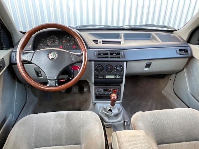 Zo heel af toe lopen wij aan tegen vergeten pareltjes met een mooi verhaal. Deze Alfa Romeo 155 is samen met een 75 die wij ook binnenkort te koop zetten zo een vondst. Gevonden bij een vrijwel verlaten Alfa Romeo garage in België. Zoek even op “alfa romeo the bearded explorer’” en je ziet diverse filmpjes voorbijkomen waar deze 2 auto’s te zien zijn in een verwaarloosde showroom van een oude (ooit) Alfa Romeo dealer.