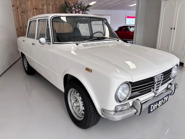 Een zeer mooie en goedrijdende alfa romeo giulia van het bouwjaar 1969. Het betreft hier een " 1300ti uitvoering " die van a tot z uit elkaar is geweest. De vorige eigenaar die vanwege ruimte gebrek zijn geliefde alfa moest verkopen heeft de auto grondig aangepakt. De bodem van de auto is even mooi en netjes als de buitenkant, deze heeft hij ook ongetectyleerd gelaten zodat je kan zien hoe netjes hij is.