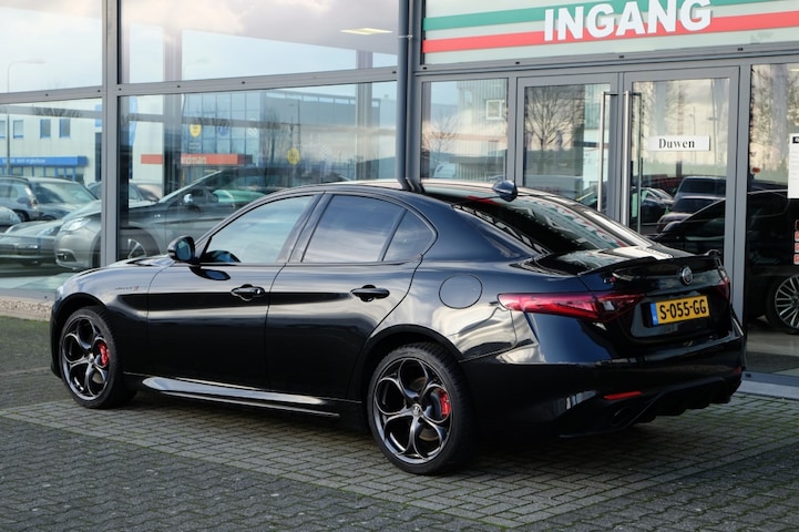 De door ons aangeboden Alfa Giulia Veloce betreft de ultieme Veloce TI uitvoering in de vernieuwde editie. Deze Giulia is niet alleen voorzien van uitgerust met de supersnelle combinatie van de krachtige 2,0 liter (280 pk) benzinemotor met de heerlijke automatische 8-versnelingsbak van ZF maar ook van veel extra opties. Wat komen de lijnen van de Giulia mooi uit in volledig zwart, met zwarte 19 inch 8C style lichtmetalen velgen en rode remklauwen! Deze Giulia is voorzien van onder meer 4 wielaandrijving, daarnaast de elektrisch verstelbare fantastische sportstoelen van de Giulia Q, touchscreen Apple Carplay, leren dashboard etc etc. Kortom heerlijke Giulia in droomuitvoering voor elke gelegenheid in alle seizoenen.