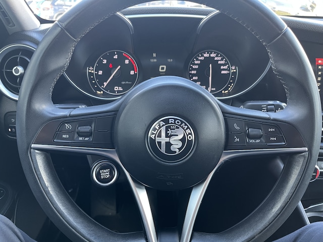 De nieuwste veiligheidssystemen komen in deze Alfa Romeo Giulia samen. Het Lane-keeping systeem registreert permanent of u binnen de lijnen van de rijstrook blijft; dwaalt u onbedoeld af, dan waarschuwt het systeem en corrigeert de koers.