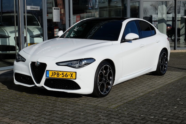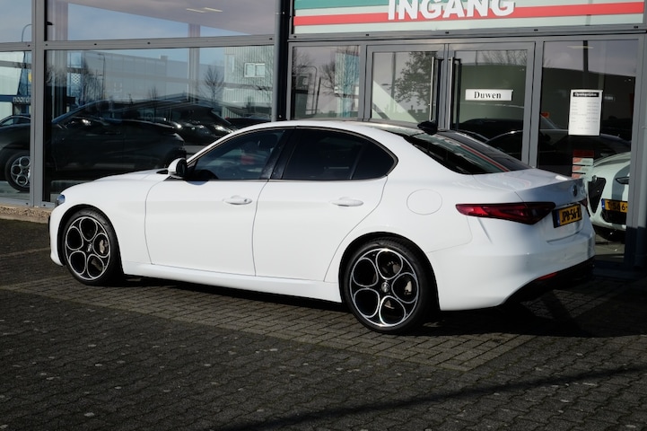 De door ons aangeboden Alfa Giulia is van het vernieuwde type met de 190pk dieselmotor, gecombineerd met de soepel schakelende automatisch 8 bak van ZF. Deze Giulia is erg compleet uitgevoerd, waardoor er eigenlijk niets te wensen over is, met opties als Veloce interieur in vol lederen bekleding, Apple Carplay, zeer fraaie 19 inch 5 gaats lichtmetalen velgen, afneembare trekhaak, PDC voor en achter, etc. etc. In wit met de zwarte raamlijsten en het zwarte schuifdak komt de Giulia erg goed tot zijn recht. Kortom prachtige Alfa Giulia met veel mooie opties!