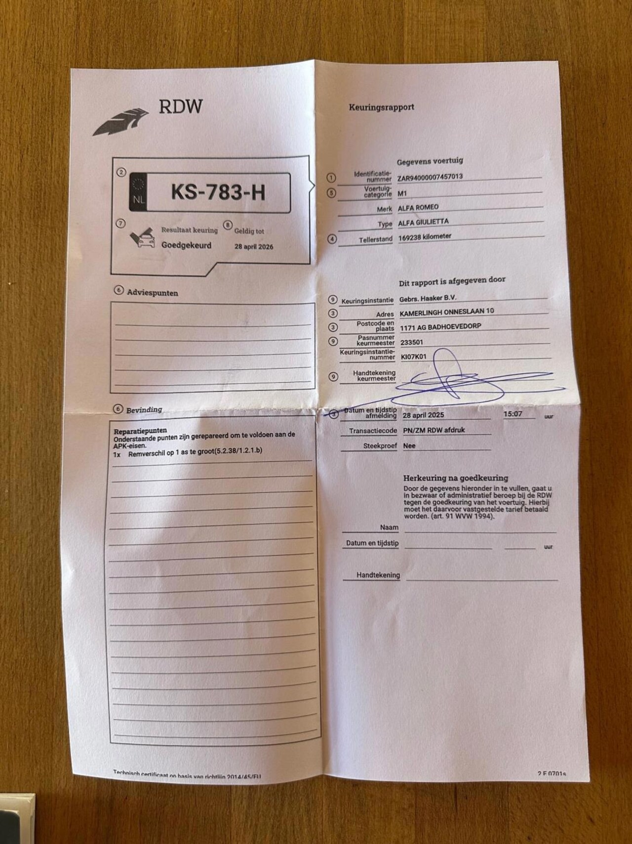 | Kenteken | KS-783-H |