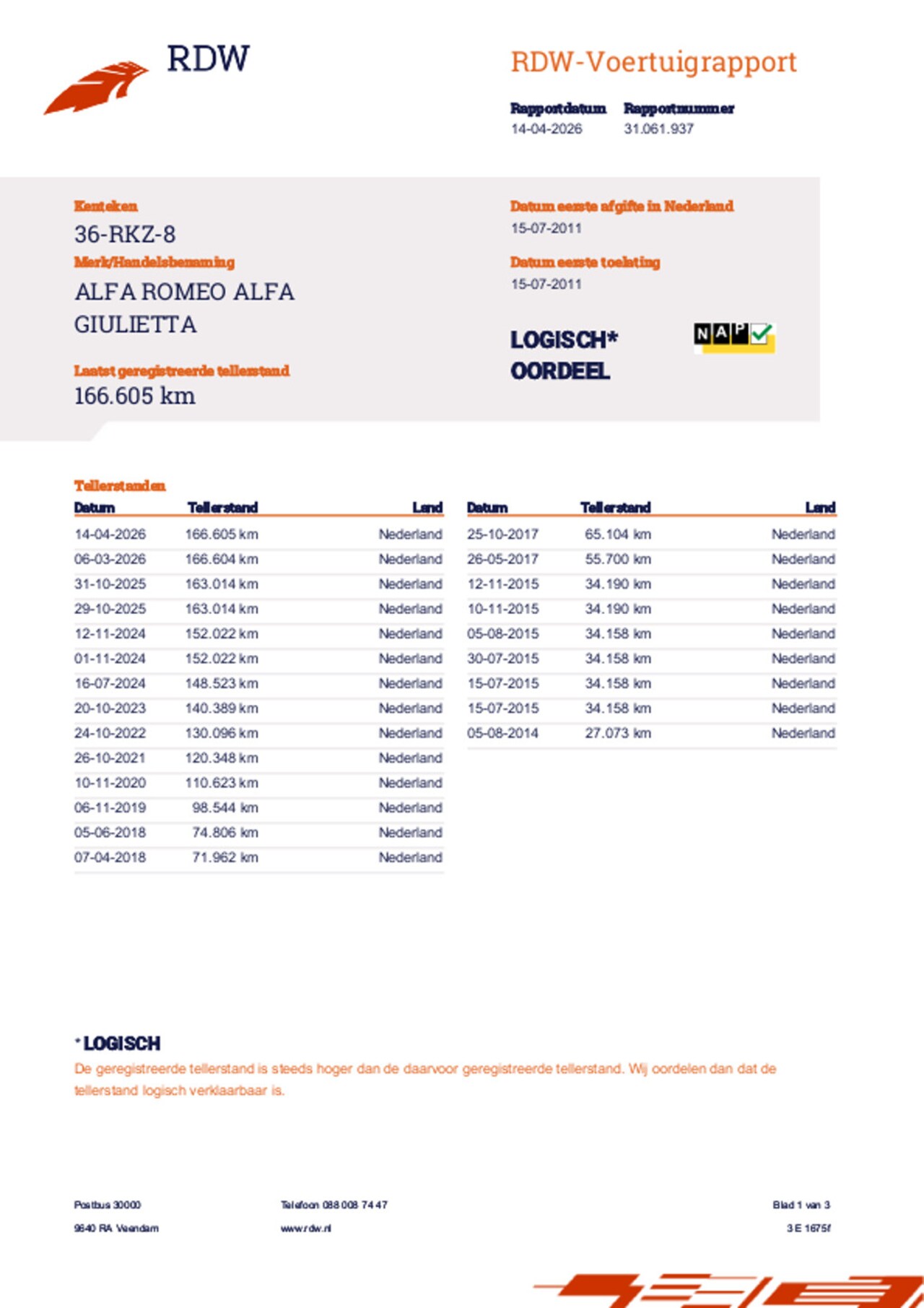 | Kilometerstand | 166.606 km |