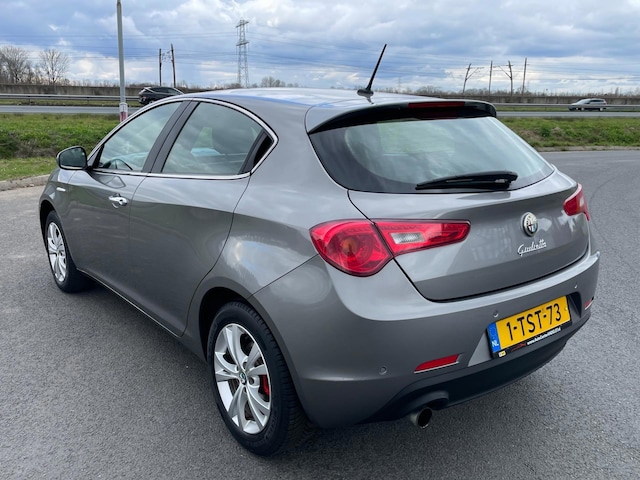 Leuke sportieve, van 2e eigenaar afkomstige en originele Nederlandse Alfa Romeo Giulietta 1.4 T Distinctive Lusso. Deze Alfa Romeo Giulietta is o.a. voorzien van de ''Navigatie-pakket'' (audio-navigatie full map, autotelefoonvoorbereiding met Bluetooth, DAB en spraakbediening). Verder heeft deze Alfa Romeo Giulietta achterspoiler, automatische airco, boordcomputer, chroom delen exterieur, cruise control, elektrische ramen voor en achter, hill hold functie, LED achterlichten en dagrijverlichting, lichtmetalen velgen 16'', metallic lak, multifunctioneel lederen stuurwiel, parkeersensor achter, start/stop systeem, etc.