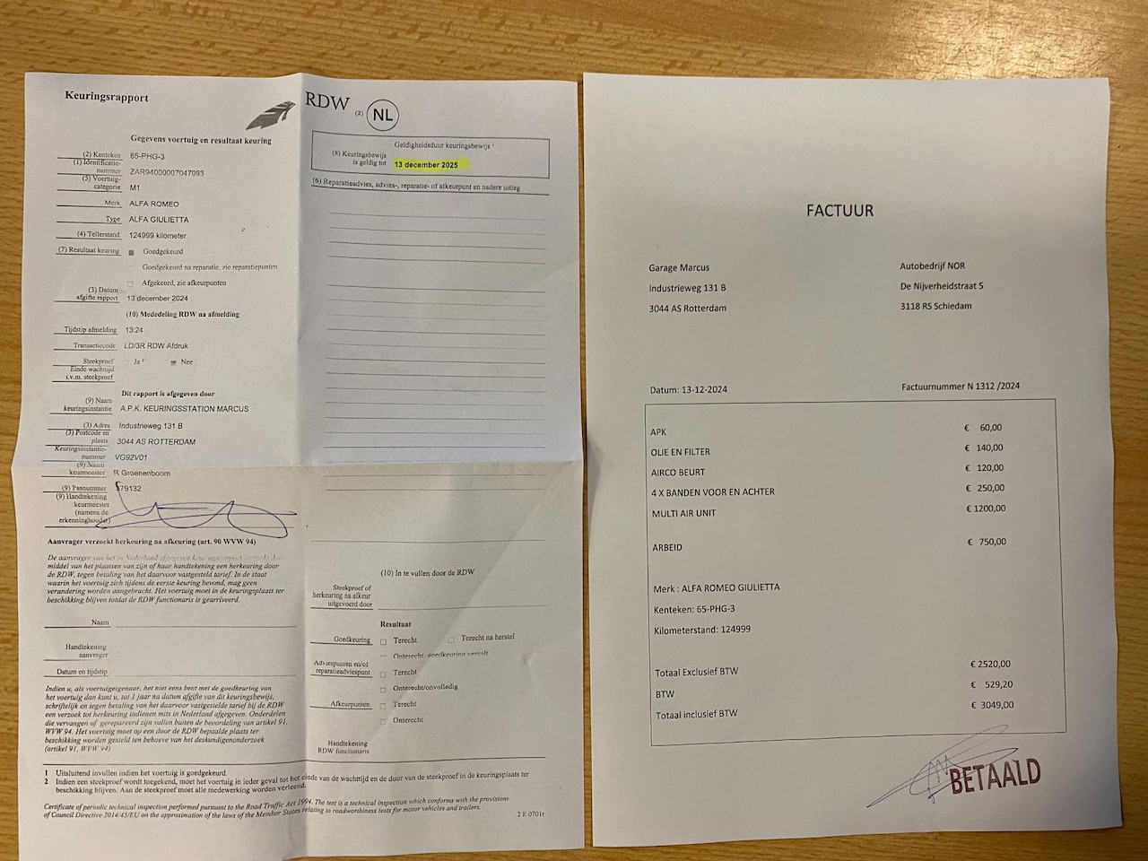 | APK | Bij aflevering |