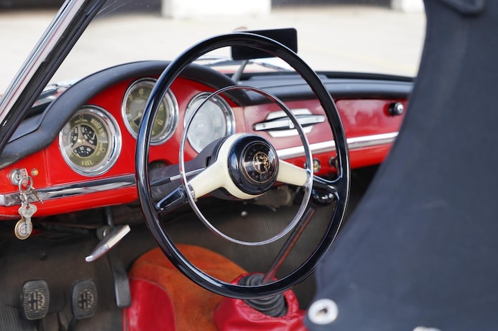 Deze ongelooflijk mooie Giuletta Spider uit 1960 kochten wij van een absolute liefhebber. Lang in bezit geweest, technisch helemaal bij. Een prachtige frisse kap, strakke carosserie, perfect sturend. Dit is een auto waar je in wilt stappen en mee naar Milaan wilt rijden. De Giulietta Spider wordt door de jaren heen eigenlijk alleen nog maar mooier.. 65 jaar oud inmiddels, klassieke schoonheid en een feest om mee te rijden. Kijk voor meer dan 40 foto's in hoge resolutie op www.samvandalen.com