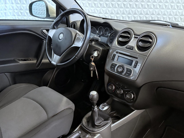 Hier staat een leuke sportieve Alfa-Romeo MITO 1.4 met een originele kilometerstand. In de basis voorzien van een airco, centraal op afstand, elektrische ramen + spiegels, geïntegreerde audio af-fabriek, instelbare rijstijl (DNA), lederen (deels geperforeerd) stuurwiel, en een vrij net interieur met diverse zilveren/aluminium kleurige accenten.