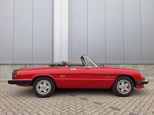 Als Romeo Spider 2.0 Veloce. Voorzien van een gereviseerde 2 liter motor met injectie en een 5 versnellingsbak. De volledige motorrevisie is uitgevoerd door Van Neerijnen in 2021. Vorig jaar nieuwe zuigerveren en koppakking. En gedeeltelijke revisie van de versnellingsbak. De Spider is overigens al vanaf 2005 bij ons in onderhoud. Echt een zeer fijn rijdende Spider met pittige 2 liter.