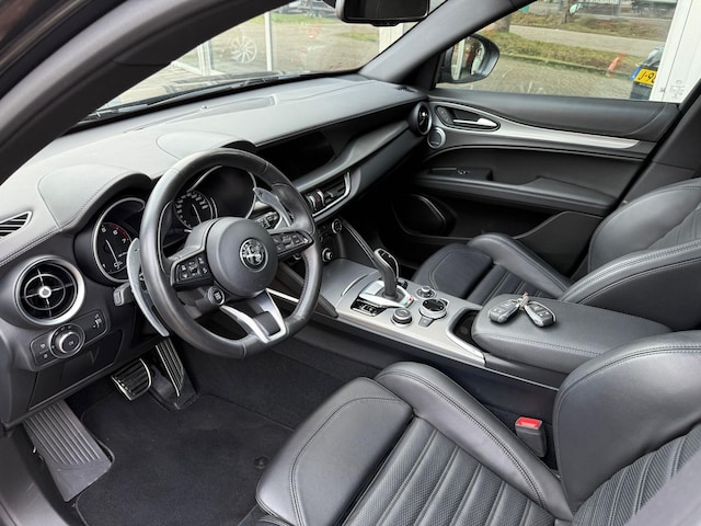 Alle technologie in de Alfa Romeo Stelvio is er op gericht om uw rit veilig en gemakkelijk te laten verlopen. De aandrijving van deze Alfa Romeo wordt verzorgd door een viercilinder benzinemotor en een automatische transmissie. Deze Alfa Romeo Stelvio legt bestuurder én bijrijder compleet in de watten met de verwarmbare voorstoelen. De lederen sportstoelen geven het interieur van deze Stelvio een super strakke en sportieve uitstraling. De bagageruimte is toegankelijk via een comfortverhogende elektrische achterklep. In het donker zorgt de xenonverlichting voor een goed zicht op de weg. Bij de uitrusting van deze Alfa Romeo horen onder meer 20 inch lichtmetalen velgen, zwarte hemelbekleding, donker getint glas achter, neerklapbare achterbank, LED-achterlichten en verwarmde ruitensproeiers.
