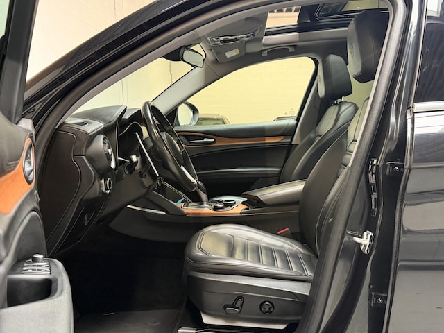 Geniet van het rijplezier dat alleen een Italiaanse auto u kan bieden. De krachtige motor geeft deze Alfa Romeo uitstekende prestaties. Als we het over extra cachet hebben, moeten we zeker het lederen interieur noemen. Bestuurder en bijrijder krijgen een warm welkom: deze Alfa Romeo STELVIO is voorzien van verwarmbare voorstoelen. In deze uitvoering is de STELVIO voorzien van mooie, maar ook functionele sportstoelen. Licht en lucht komen onbelemmerd binnen als het elektrisch bediende glazen panoramadak met één druk op de knop wordt geopend. De achterklep opent automatisch met een druk op de knop. Handig als u met volle handen staat. Hoe koud het buiten ook is, het verwarmbare stuurwiel brengt uw handen en vingers snel weer op temperatuur. Bij de uitrusting van deze Alfa Romeo horen onder meer 20 inch lichtmetalen velgen, bi-xenon koplampen, extra getint glas en LED-achterlichten.