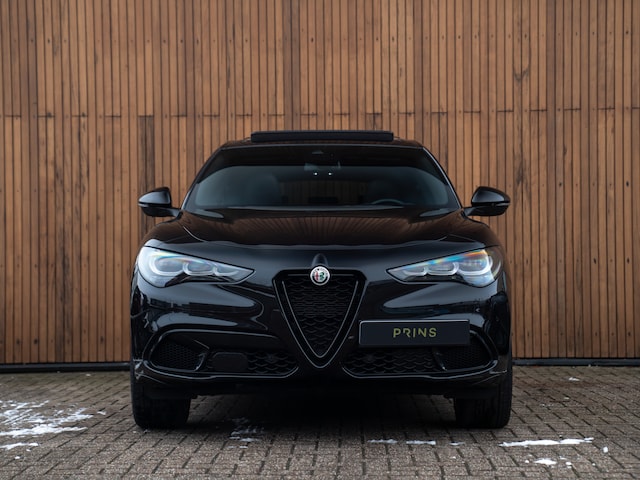 Nieuw binnen: fantastische Stelvio Competizione 280pk in het Nero Vulcano met 21 inch wielen, Harman/Kardon, LED-Matrix, panoramadak etc!