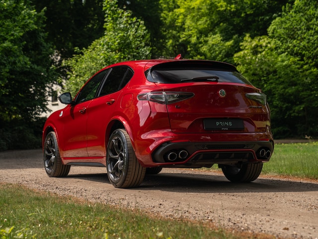 Deze flamboyante krachtpatser is volledig gezins-proof. En dat maakt de ultieme Performance-SUV van Alfa Romeo des te aantrekkelijker. Toch is de veelzijdigheid van de Stelvio Quadrifoglio Q4 niet de belangrijkste reden om als een blok voor onze 510 pk sterke Alfa te vallen. De bi-turbo V6 presteert namelijk zoals de Rosso Competizione Stelvio Q eruitziet: briljant. Diverse rode, alsmede carbon interieurdetails leggen de ziel van deze 5-zits sportauto volledig bloot. Want dit is het uitgangspunt waaraan Alfa Romeo zich vasthield bij de ontwikkeling van haar opper-SUV: een sportauto pur sang. Dat hij ‘toevallig’ net zo praktisch is als menig hoge familiewagen, is mooi meegenomen. Net als de luxe uitrusting die hier naadloos op aansluit: stoel- stuurverwarming, Adaptive Cruise Control, Harman Kardon audio en Apple CarPlay zijn stuk voor stuk bij dit Italiaanse pretpakket inbegrepen. Niet dat de liefhebber het ook maar in zijn hoofd haalt om de hoogwaardige geluidsinstallatie boven de sound van een dubbel geblazen 6-cilinder uit te kiezen…