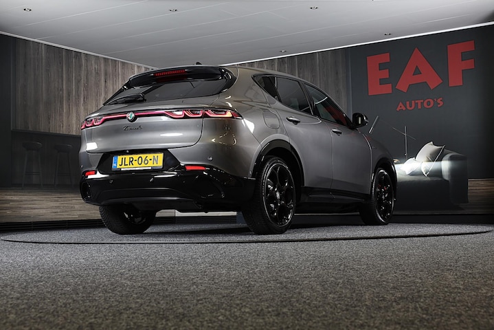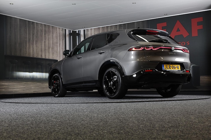 Het is niet alleen maar een stoer uiterlijk, deze Alfa Romeo TONALE biedt ook de sportieve rijkwaliteiten die u zoekt. De aandrijving van deze Alfa Romeo wordt verzorgd door een viercilinder motor en een automatische transmissie. Met één klik ontgrendelt u de elektrisch bedienbare achterklep, die voor u openzwaait. Mooi hoe deze auto slim en praktisch nut koppelt aan een stijlvolle binnenkant. Heeft u het lederen interieur al gezien? Dankzij de elektrische stoelbediening is het gemakkelijk om de optimale zitpositie te vinden. Als het buiten koud wordt, voelt zo'n verwarmd stuurwiel heerlijk aan. Voorzien van matrix LED-verlichting. De auto dimt precies dat deel van de lichtstraal waar de voor- of tegenliggers in rijden. De overige segmenten blijven aan en verlichten de weg. Natuurlijk behoren 19 inch lichtmetalen velgen, zwarte hemelbekleding, extra getint glas, in delen neerklapbare achterbank, LED-achterlichten en verstelbare lendensteunen ook tot de uitrusting van deze complete auto.