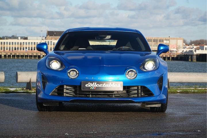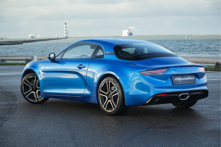 De A110 ontleent zijn stijl aan de iconische Berlinette en vult die aan met moderne designkenmerken die de auto nog aerodynamischer maken. Alpine koos bewust voor een relatief zachte setup om de auto voldoende comfort te geven en een speels weggedrag. De 1.8 Turbomotor die in het midden ligt zorgt voor uitstekende prestaties en schakelen gebeurt door een versnellingsbak met dubbele koppeling en wisselt razendsnel naar de volgende versnelling. Het hele concept zorgt voor een geweldige rijbeleving mede dankzij de Sabelt kuipstoelen die speciaal voor de Alpine zijn ontworpen. Nu bij ons in de veiling een origineel Nederlands geleverde Alpine A110 Première Edition uit 2018 met slechts 30.000km. De Premier Editions zijn uniek en vol opties, onder andere voorzien van de juiste 18 inch wielen, Sabelt kuipstoelen en sportuitlaat. Uitgevoerd in de enige juiste kleur, Alpine blauw, met de Sabelt kuipstoelen een prachtige verschijning. De Brembo remklauwen zijn in dezelfde kleur gespoten en zorgen voor zeer korte remweg, mede vanwege het lage gewicht. Het betreft hier nummer 144 uit de eerste serie van 1955 stuks. 1955 was het jaartal waarin de Alpine haar eerste productieauto leverde. Let vooral even op alle details op deze Alpine, zoals de interieurafwerking, de “12 uur” markering op het stuurwiel, de centraal geplaatste uitlaat die ondergebracht is in de diffuser, maar ook de subtel aangebrachte Franse vlag en merkinscriptie in de velgen. Deze Alpine A110 is echt helemaal af!