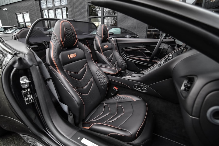 Een uitgebreide beschrijving vindt u op www.akker.nl. De nieuwprijs bedraagt €460.376,- Deze schitterende Aston Martin DBS Superleggera Volante staat in consignatie van een cliënt. Carbon exterieurpakket, Oranje remklauwen, DBS-aanduiding in de stoelen, Carbon / Leder sportstuurwiel, Elektronisch geregelde demping, Contrasterende stiksels, 21 Inch 5-dubbelspaaks (gloss black), Windscherm, Smoked achterlichten, Q Carbon Exterior Badge Pack, Achterzijde stoelen in Carbon, Touchpad, Wifi-voorbereiding, Elektrisch verschuifbare middenarmsteun, Lederen A-stijlen en zonnekleppen.
