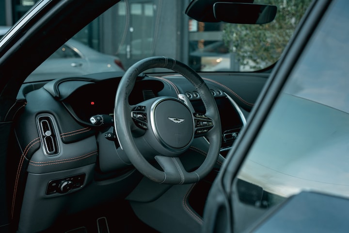 De DBX combineert het rauwe DNA van een Britse sportwagen met het comfort en de aanwezigheid van een luxe performance-SUV. In donkergrijs metallic oogt hij ingetogen, bijna bescheiden — tot je hem ziet bewegen. Breed, gespierd en onmiskenbaar Aston Martin.
