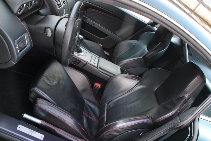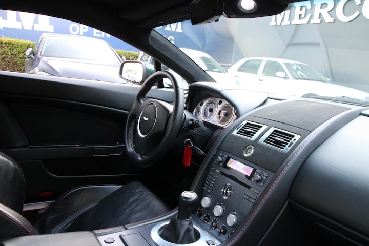 Het interieur is heerlijk doeltreffend en fraai opgezet. Het straalt een bepaalde sfeer uit die alleen een Britse automaker kan bouwen. Het interieur maakt de combinatie tussen sportief en chique compleet met heerlijk soepel leder in zwart afgezet met rood stiksel. De sportstoelen geven heerlijk veel steun en sluiten perfect aan. Uiteraard zijn ze elektrisch verstelbaar en zult u altijd een heerlijke zitpositie vinden. Het dashboard is eveneens met leder bekleed en de draaiknoppen voor de climate control zijn vervaardigd uit aluminium. Het meest opvallende en meest geliefde onderdeel van de cockpit is echter de pook die uit de transmissie tussen steekt. Dit exemplaar is namelijk handgeschakeld en maakt het rijden tot een nóg groter feest. Want ook bij een Aston Martin telt: het maakt niet uit hoe goed de auto er uit ziet als het niet ook een feest is om er mee te rijden. Uiteraard zijn zaken die u van een auto van dit kaliber mag verwachten allemaal aanwezig. De Vantage beschikt onder andere over een boordcomputer, parkeersensoren en nog veel meer.