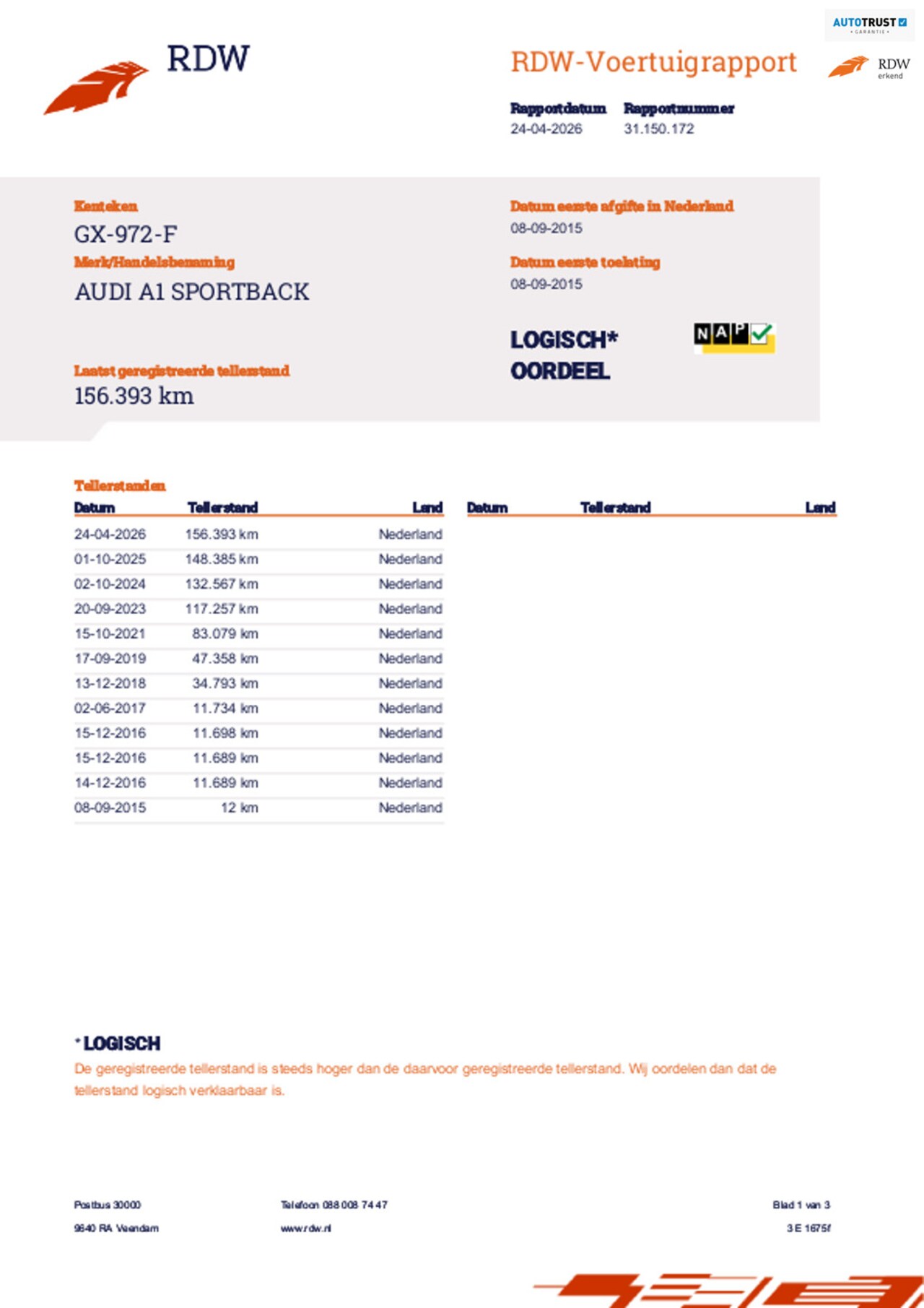 | Kilometerstand | 156.393 km |