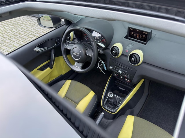 Wat deze A1 helemaal af maakt is het zeer bijzondere interieur met de gele accenten in combinatie met het panoramisch schuif/kanteldak wat zorgt voor een sportieve uitstraling.