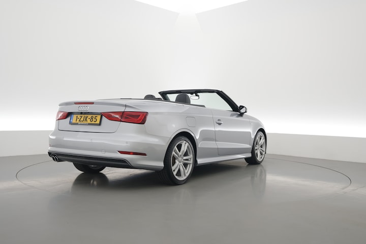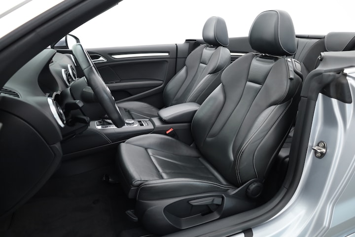 Audi A3 Cabriolet 1.4 TFSI CoD Pro S Line voorzien van o.a. lederen bekleding, Bi-xenon koplampen, achteruitrijcamera, parkeersensoren achter, navigatiesysteem, all season banden, 18 inch lichtmetalen velgen, cruise control etc.