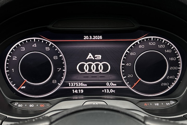 Deze Audi is voorzien van knoppen op het stuur om het full map navigatiesysteem en het audio-installatiesysteem te bedienen. De achteropkomend verkeer waarschuwing is een mooie veiligheidsoptie, die middels sensoren in de gaten houdt wat er onderweg achter u gebeurt. Het comfort wordt verhoogd door de aanwezige automatische airconditioning. Boem is ho? Niet bij deze Audi A3 Cabriolet. De piepjes van de parkeersensoren waarschuwen u op tijd voor obstakels. Achter het stuur van deze Audi bent u niet alleen. De auto kijkt als het ware met u mee tijdens de rit. De regensensor schakelt de ruitenwissers in als het nodig is en de automatisch inschakelbare verlichting doet de lichten voor u aan. Ook WIFI-hotspot, cruise control, lederen stuur, isofix-aansluiting, centrale portiervergrendeling en boordcomputer zijn aan boord.