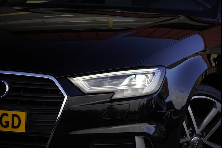 Audi A3 Limousine met de zeer luxe aanwezige opties als Lichtmetalen velgen | Led dagrijverlichting | Led koplampen | Led achterlichten | Dynamische knipperlichten | Parkeersensoren | Navigatiesysteem | Climate control | Cruise control | Sportstoelen | Verwarmde voorstoelen | Zwarte hemel | Extra getint glas.