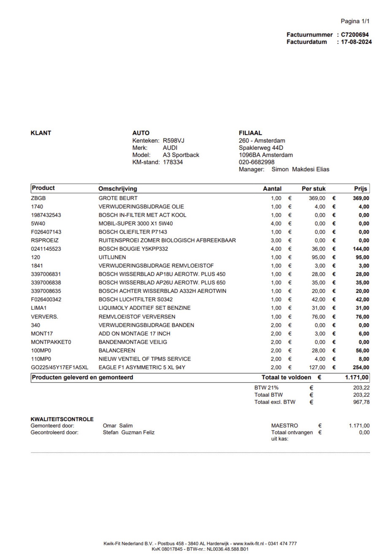 Bij aflevering