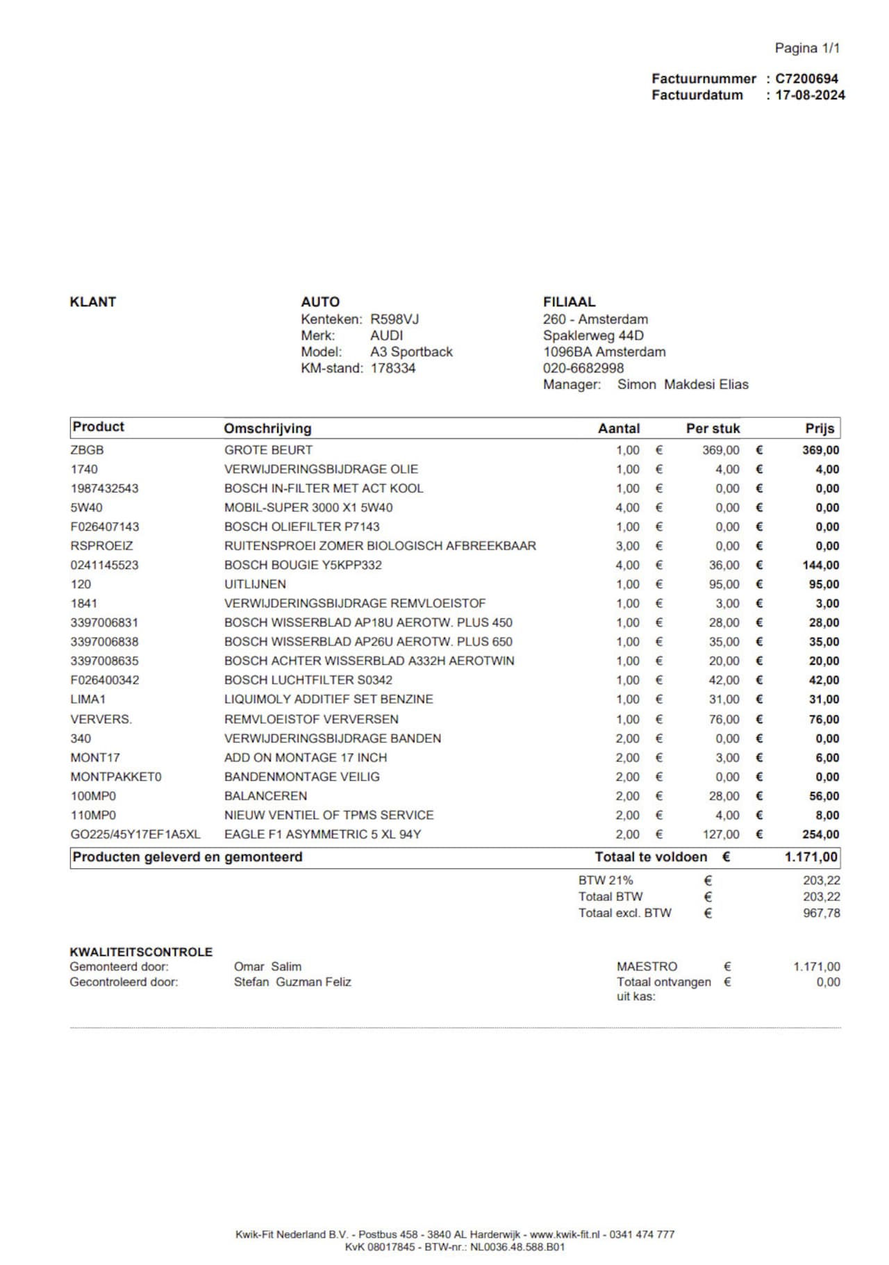 Bij aflevering