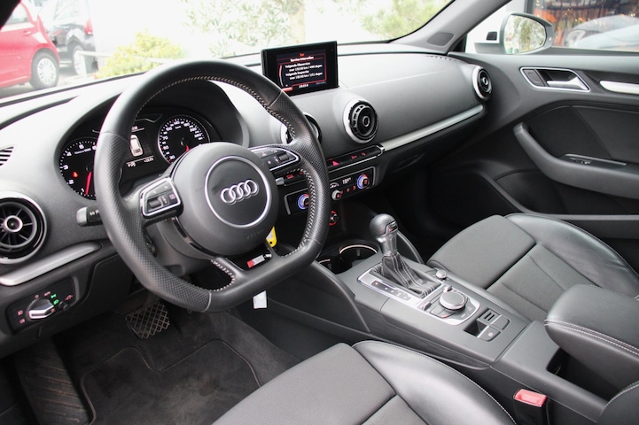geen mooie auto maar een schitterende auto! Zo vindt je niet vaak, met de juiste opties, de juiste kleur, de juiste wielen, perfect onderhouden en gedocumenteerd, de juiste motor en met de S-TRONIC automaat met dubbele koppeling. We zouden er nog veel meer foto's van kunnen maken, want deze Audi A3 is perfect op ieder detail. Zoals vermeld afkomstig van de 1e en enige eigenaar, voorzien van alle documentatie, uitgebreid volgens schema dealer onderhouden, complete boardmap en twee sleutels. Zoals de foto's ook verklappen is de auto in top conditie en uitgevoerd met een aantal zeer fijne opties; 3X S-line (interieur, exterieur en onderstel), Audi Drive select, Adaptieve Cruise Control (cruise control met afstandsregelaar), prachtige lichtmetalen wielen 18inch, bi-xenon koplampen, LED dagrij verlichting, LED achterlichten, parkeersensoren rondom, Gletscherweis exterieur lak, getint glas, chrome lijsten rondom, dode hoeksensor (zwarte vakje in de buitenspiegel), elektrische verstelbare, verwarmbare en inklapbare buitenspiegels, multifunctioneel stuurwiel, climate controle, verlichte bekerhouder, verstelbare lenden, navigatiesysteem, regensensor, AUDI sideassist, AUDI Pre Sense, Isofix en zo kunnen we nog gerust een kantje volschrijven. Kortom bent u opzoek naar een mooie, ruime, zuinige auto in een prachtige conditie met een schitterende historie? Dan staat ze hier voor u klaar!