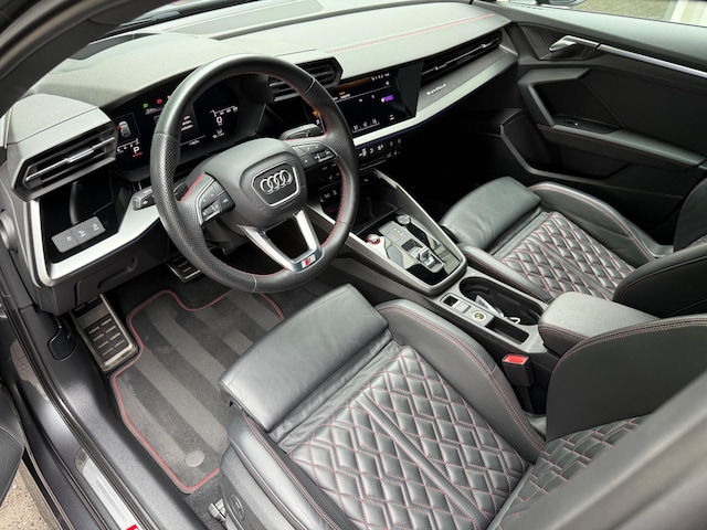 Deze Audi S3 is zeer rijk uitgerust met O.A: Matrix LED, Automaat, Climate Control, Virtual Cockpit, Elektrische Ramen Voor + Achter, Elektrische Spiegels, Automatisch Inklapbare Spiegels, Centrale Deur Vergrendeling, Multifunctioneel Leder Stuurwiel, Boordcomputer, Achterruit Verwarming, 5-Deurs, 18 Inch Originele Lichtmetalen Velgen met goede Banden, Stoelverwarming, Mistlampen, Automatische Dimmende Binnen Spiegel, Regensensor, Armsteun, Parkeersensoren, Bluetooth, Apple Car Play, Android Auto, Achteruit Rij Camera, Spraakbediening, Automatisch Licht, B&O, Vol Lederen RS Interieur met Rode Stiksels, Elektrisch Verstelbare Bestuurders Stoel met Memory, Key Less, Drive Select, Automatisch Inparkeren,  Enz..