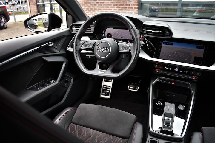 Veel gaver dan deze A3 wordt het niet! Deze compleet black-optic A3 35 TFSI heeft bijna alle opties: S-Line exterieur en interieur, 19 inch Concaver velgen, verlagingsset, head-up display, bang & olufsen audio, panodak, adaptieve cruise, ambiance / sfeerverlichting, S-zetels met leder-alcantara en rood stiksel, etc! Auto is voorzien van een schakelbaar kleppensysteem in de uitlaat!
