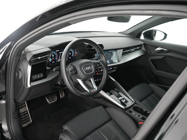 Binnenin vind je het S line interieur met sportstoelen, lederen/stof bekleding, een zwart hemelbekleding en verlichte S-instaplijsten. De sfeer is strak, modern en sportief — precies zoals een Audi hoort te zijn. Het digitale virtual cockpit, MMI Navigation Plus met MMI Touch, Audi Connect en Smartphone Interface zorgen voor een high-tech cockpit die je elke rit opnieuw beloont.