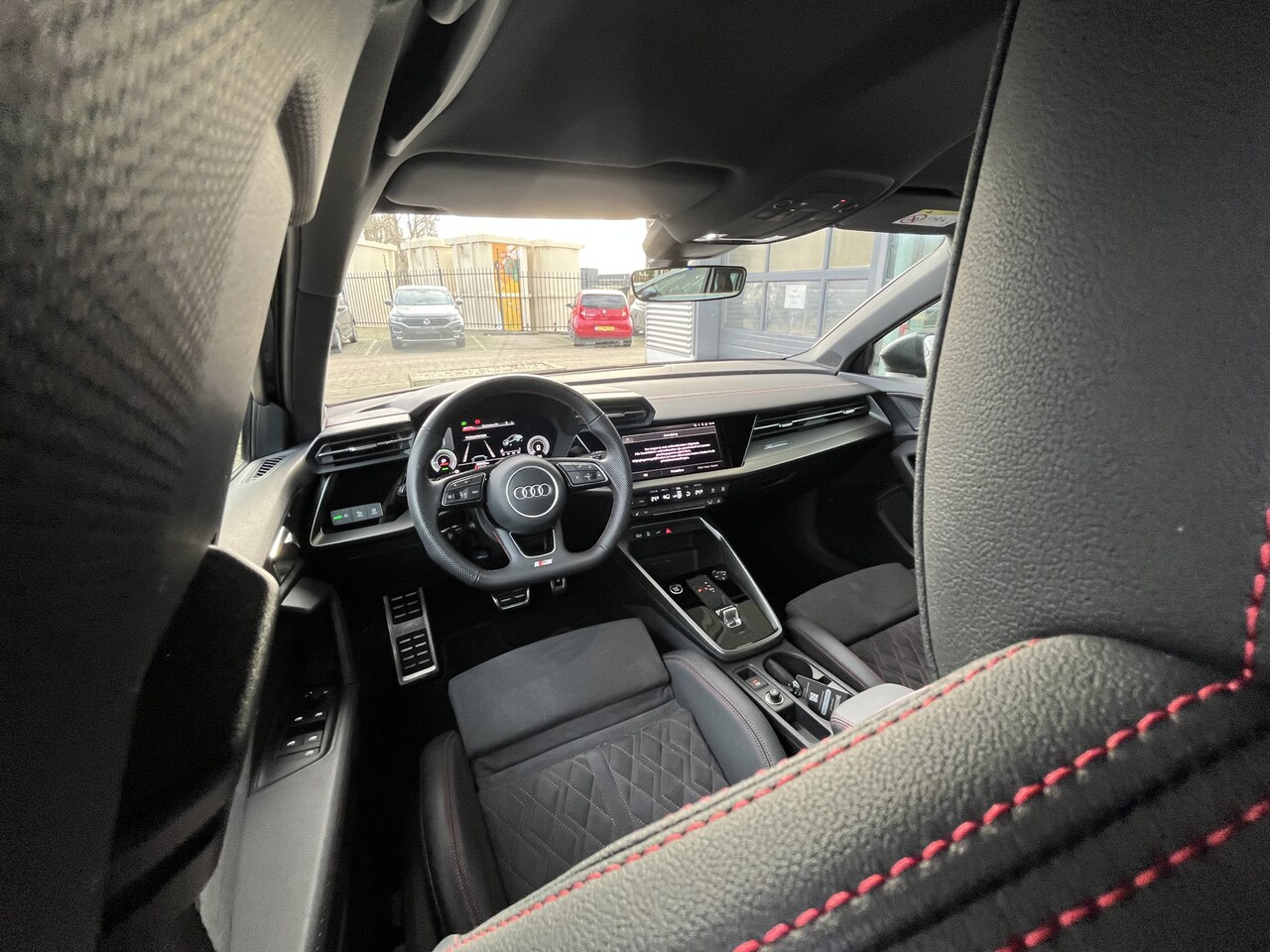 Audi A3 Sportback - 40 TFSI e S-line / Leder-Alacantara RS Stoelen met Rode Stiksels / Zwart Optiek Plus / Cam