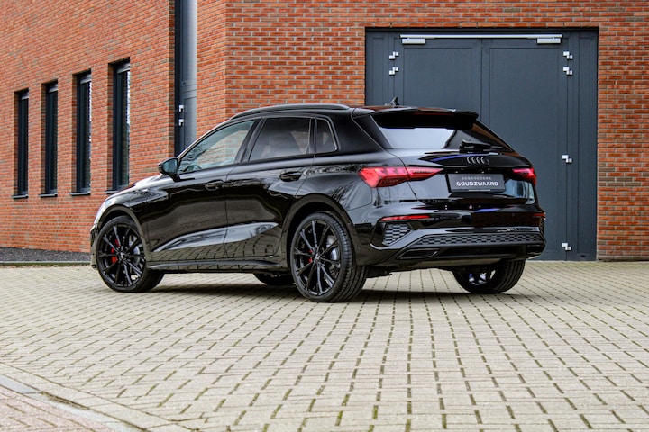 Nieuw binnen! 2022 Audi A3 Sportback S-line 245PK in mythoszwart metallic met zwart optiek en slechts 38.000 km.