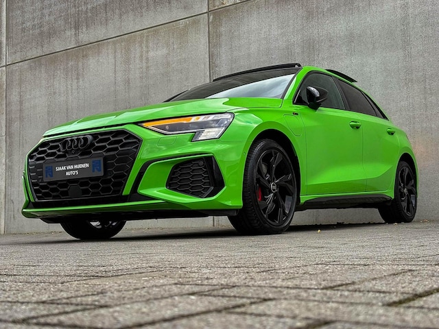 NIEUW MODEL| MODEL 2023| MODEL 8Y! Een in bijzonder nette staat verkerende Audi A3 Sportback 5-Deurs Competition 45 TFSI e 245pk S-Tronic Automaat S-Line S Edition Pro Line S! Dit UNIEKE AUDI EXCLUSIVE EXEMPLAAR is afkomstig van de 1e eigenaar, betreft een origineel Audi dealer auto met een gecontroleerde tellerstand van slechts 52.567km. Een geweldig sportieve Sportback Competition uitvoering in echte liefhebbers configuratie; het Competition S-Line exterieur- & interieurpakket en de fantastische Kyalami RS Green Audi Exclusive lak gecombineerd met het zwart optiekpakket, de elektrisch verstelbare Lederen/Alcantara S kuipstoelen incl. Diamond Cross stitching, 360° Camera/ Area View, Audi Exclusive Alcantara airbag + geperforeerd afgevlakt stuurwiel, het Panoramisch glazen schuif-/kanteldak en natuurlijk de Audi Virtual Cockpit Plus! Deze A3 Competition biedt geweldige prestaties met z'n 180kw/245pk en 400Nm koppel! DURF JIJ HEM AAN?! De nieuwwaarde van ruim €58.000,- vertegenwoordigd een uitzonderlijk royaal uitrustingsniveau. Het betreft een BTW-auto, dus voor zowel de zakelijke als particuliere klant interessant. De getoonde 18inch OEM Audi Sport Black optiek velgenset met 4x Bridgestone Turanza T005 zomerbanden is tegen geringe meerprijs van €995,- te verkrijgen.