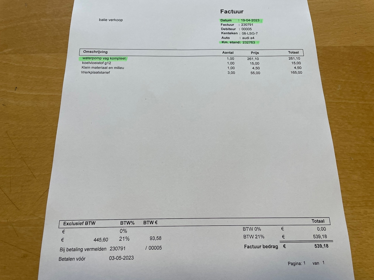 Bij aflevering