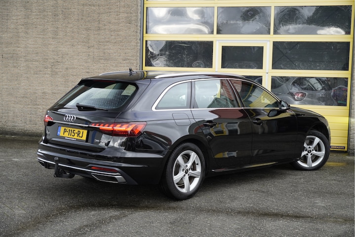 Audi A4 Avant Automaat met de zeer luxe aanwezige opties als Lichtmetalen velgen | Led dagrijverlichting | Led koplampen | Led achterlichten | Dynamische knipperlichten | Parkeersensoren | Sideskirts | Elektrische trekhaak | Elektrische achterklep | App-Connect | Navigatiesysteem | Virtual cockpit | Climate control | Sportstoelen | Sport stuurwiel | Getint glas.