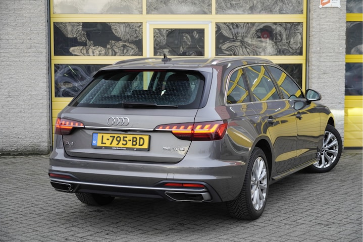 Audi A4 Avant Automaat met de zeer luxe aanwezige opties als Lichtmetalen velgen | Led dagrijverlichting | Led koplampen | Led achterlichten | Dynamische knipperlichten | Parkeersensoren | Sideskirts | Elektrische achterklep | 360° Camera | App-Connect | Dashboard verlichting | Virtual cockpit | Navigatiesysteem | Climate control | Cruise control | Sportstoelen | Getint glas.
