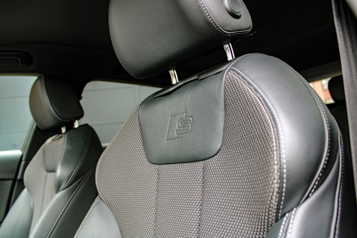 Het S line afgevlakte sportstuur, de Virtual Cockpit, zwarte hemelbekleding, 30 kleuren ambianceverlichting, achteruitrijcamera, cruise control en natuurlijk de S-sportstoelen in half leder/stof – heerlijk stevig en comfortabel tegelijk.