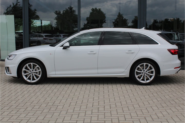 Zeer complete en sportieve Audi A4 Avant S Line Edition met de 245pk sterke 2.0 TFSi mild hybride motor en slechts 80613km! Deze A4 is schitterend samengesteld in Glacier White met een S-Line exterieur en een mooi zwart lederen sportinterieur. Qua opties vinden we onder andere een elektrisch panoramadak, Virtual Cockpit, stoelverwarming, zwarte hemelbekleding, stoelen en achterbank verwarmd, LED koplampen en LED achterlichten met dynamische knipperlichten, navigatie met multimedia, DAB en bluetooth, Head-up display, elektrische achterklep, privacy glass, 3-zone climate control, adaptieve cruise control, PDC voor en achter met achteruitrijcamera en parkeerassistent, licht- en regensensor, lane assist, dodehoekdetectie, enz. Volledig dealeronderhouden auto van de 2e eigenaar met 2 sleutels en complete historie! De prijs voor deze bijzondere Audi inclusief onderhoudsbeurt volgens schema, nieuwe APK en 12 maanden BOVAG garantie t.w.v. € 1.195,- is € 34.145,-.