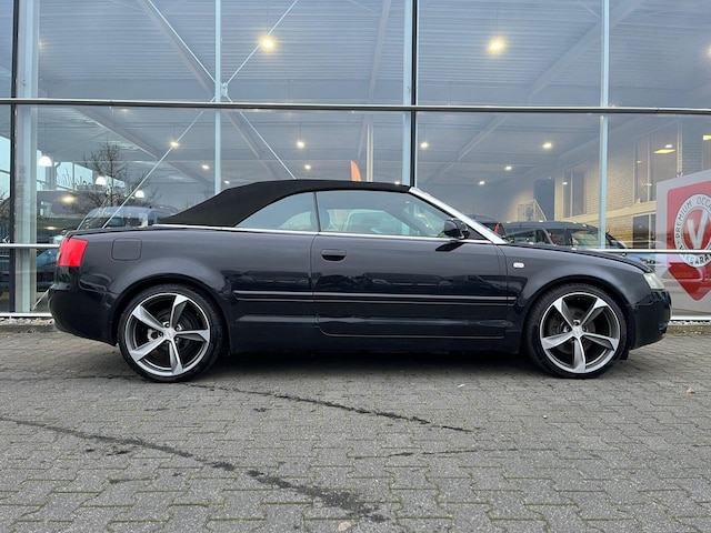 Met een auto als deze Audi A4 Cabriolet komt u absoluut goed voor de dag. De aandrijving komt voor rekening van een benzinemotor en een handgeschakelde versnellingsbak. Open rijden was nog nooit zo eenvoudig. Het cabriodak opent soepel en stil dankzij de elektrische bediening. Tot de uitrusting van deze Audi behoren ook elektrisch verstelbare voorstoelen, 17 inch lichtmetalen velgen, elektrisch verstelde en verwarmde buitenspiegels, verstelbare lendensteunen, elektrisch bedienbare ramen achter en windscherm.