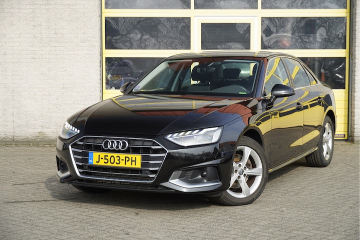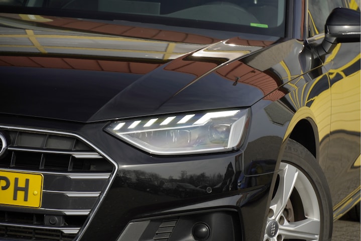 Audi A4 Limousine Automaat met de zeer luxe aanwezige opties als Lichtmetalen velgen 17" | Led dagrijverlichting | Led koplampen | Led achterlichten | Dynamische knipperlichten | Parkeersensoren | Sideskirts | App-Connect | Navigatiesysteem | Virtual cockpit | Climate control | Cruise control | Sportstoelen | Getint glas.