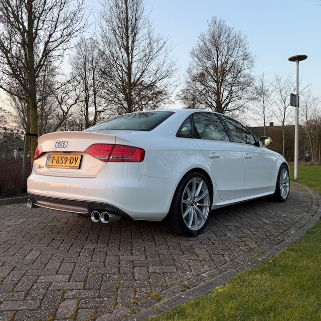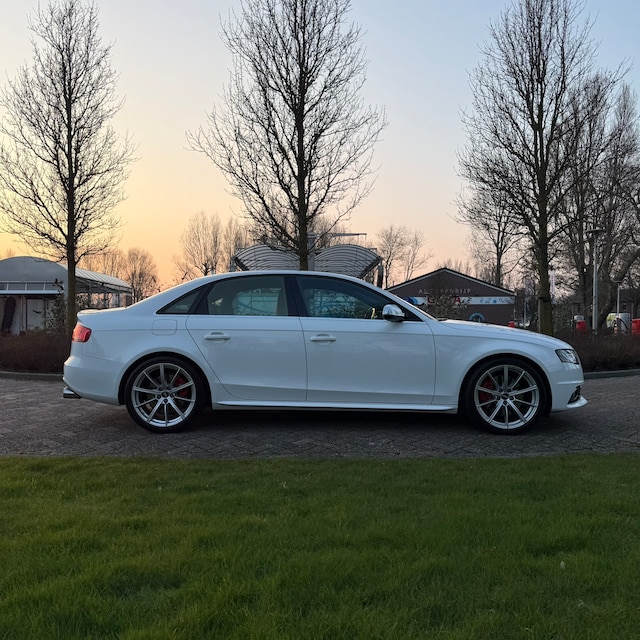 Bij de bouw van de Audi A4 Limousine S4 wordt niets aan het toeval overgelaten. Vandaar dat hier een auto staat die in optimale conditie verkeert. S-Line styling geeft deze auto een extra dynamische uitstraling. Hij heeft een benzinemotor en een automatische transmissie. Scherpe bochten, pittige acceleraties? In de sportstoelen blijft u altijd in positie. Xenonverlichting zorgt voor een heldere witblauwe lichtkleur en een scherp lichtbeeld. Bij de zeer complete uitrusting van deze auto behoren ook 18 inch lichtmetalen velgen, sportonderstel, halflederen bekleding, in delen neerklapbare achterbank, verstelbare lendensteunen en Servotronic snelheidsafhankelijke stuurbekrachtiging.