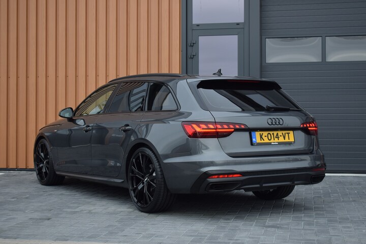 Audi A4 Avant 35 TFSI 150pk S-tronic S-line Black Edition. Uitgevoerd met o.a.: Panoramadak, Virtual Cockpit, Sfeerverlichting interieur, Half lederen interieur met sportstoelen voor, Stoelverwarming, Lichtmetalen velgen 20", Climate control met airco bediening achter, Cruise control, LED koplampen en achterlichten, Dynamische knipperlichten achter, MMI Navigatiesysteem, Apple Carplay, Elektrisch bedienbare achterklep, Elektrisch bedienbare kindersloten, Privacy glas achter.