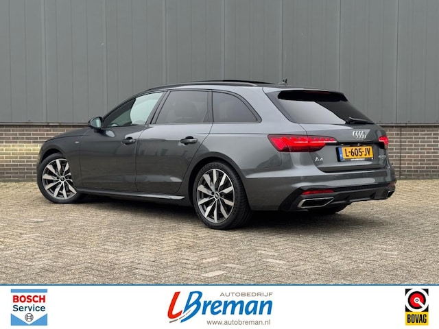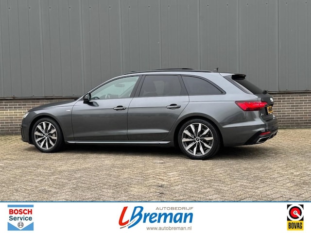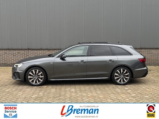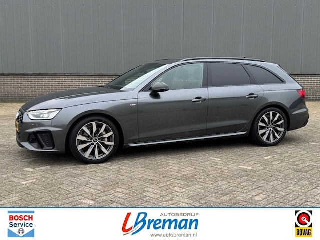 Audi A4 Avant 40 2.0 TSI 204pk S-Line Quattro automaat met o.a.: elektrisch panoramadak, elektrische achterklep, elektrisch wegklapbaar trekhaak, stoelverwarming, Apple CarPlay, Android Auto, climate control, Audi Drive Select, afgevlakt S-Line stuurwiel, S-Line interieur, S-Line exterieur, virtual cockpit, LED koplampen, LED achterlichten, licht en zicht pakket, touchscreen, navigatie, privacy glas, black optiek pakket, cruise control, 18”‘lichtmetalen velgen, PDC voor en achter, sfeerverlichting, grootlicht assistent, etc. Autobedrijf Breman Bosch Car Service dealer, uw adres voor levering van alle merken nieuw (met behoud fabrieksgarantie) en gebruikt, onderhoud/reparatie alle merken personen- en bedrijfsauto's, aanhangwagens. Diverse Autotrust garantiemogelijkheden keuze uit 6, 12 of 24 maanden garantie, informeer naar de mogelijkheden en voorwaarden . Kijk voor meer info op www.autobreman.nl of www.autobedrijfbreman.nl. Openingstijden, maandag t/m vrijdag van 09.00uur tot 18.00uur en zaterdag van 09.00uur tot 12.00uur. Zon- en feestdagen altijd gesloten.