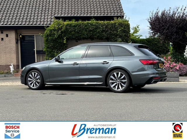 Audi A4 Avant 40 S-Line Quattro automaat met o.a.: elektrisch panoramadak, elektrische achterklep, elektrisch wegklapbaar trekhaak, stoelverwarming, Apple CarPlay, Android Auto, climate control, Audi Drive Select, afgevlakt S-Line stuurwiel, S-Line interieur, S-Line exterieur, virtual cockpit, LED koplampen, LED achterlichten, licht en zicht pakket, touchscreen, navigatie, privacy glas, black optiek pakket, cruise control, 18”‘lichtmetalen velgen, PDC voor en achter, sfeerverlichting, grootlicht assistent, etc. Autobedrijf Breman Bosch Car Service dealer, uw adres voor levering van alle merken nieuw (met behoud fabrieksgarantie) en gebruikt, onderhoud/reparatie alle merken personen- en bedrijfsauto's, aanhangwagens. Diverse Autotrust garantiemogelijkheden keuze uit 6, 12 of 24 maanden garantie, informeer naar de mogelijkheden en voorwaarden . Kijk voor meer info op www.autobreman.nl of www.autobedrijfbreman.nl. Openingstijden, maandag t/m vrijdag van 09.00uur tot 18.00uur en zaterdag van 09.00uur tot 12.00uur. Zon- en feestdagen altijd gesloten.