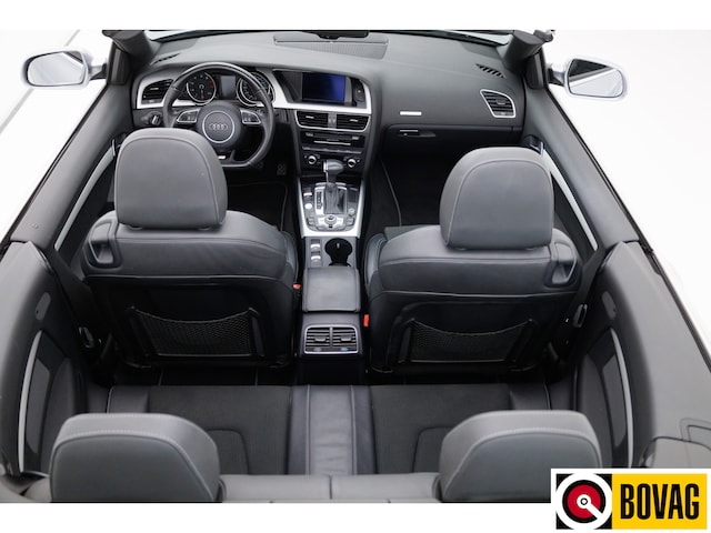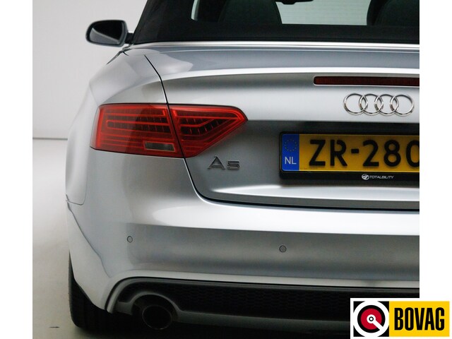 Zodra de zon zich laat zien, kunt u heerlijk genieten achter het stuur van deze cabriolet. Deze Audi A5 Cabriolet bewijst haar klasse met een elegant uiterlijk en een comfortabele binnenruimte, onmiskenbaar een kwaliteitsauto uit Duitsland. De S-Line styling geeft dit model een elegante en opvallende uitstraling. Een krachtige motor geeft deze auto zijn sportieve prestaties. Ga samen met uw bijrijder lekker zitten in de verwarmbare voorstoelen. Stevig ondersteund door de sportstoelen blijft u bij elke beweging op uw plek. Het elektrische cabriodak opent en sluit zonder dat u daar extra moeite voor hoeft te doen. Xenonverlichting zorgt voor een krachtige en heldere lichtbundel. Ook 18 inch lichtmetalen velgen, sportonderstel, verstelbare lendensteunen en variabele stuurbekrachtiging zijn aan boord.