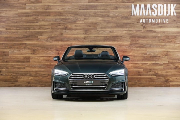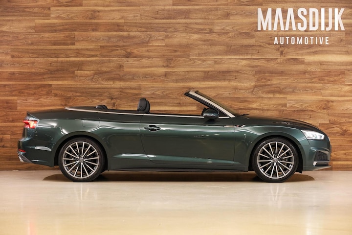 Verder is de A5 rijkelijk uitgerust met vele opties, denk aan: S-Line Exterieur, S-line interieur, S-Line onderstel, Afgevlakt S-line stuur, Vollederen bekleding, Keyless Entry & Start, Virtual Cockpit, Stoelverwarming, Nekverwarming, Massagestoelen, Climate control, Parkeercamera, Parkeersensoren achter, 19-inch lichtmetalen velgen, Matrix LED verlichting, Full map navigatiesysteem, Cruise Control, Verkeersbord detectie, Ambienteverlichting, Achteruitrij camera, Stuur multifunctioneel, Soft-top zwart etc.