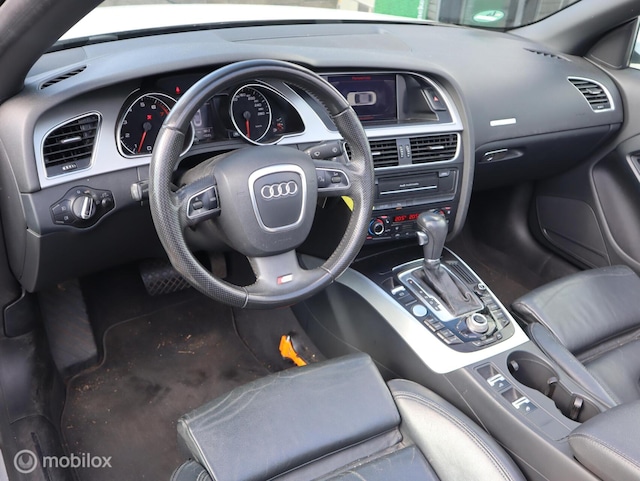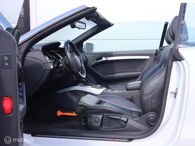Het interieur van deze Audi A5 Cabriolet beschermt u als een veilige cocon. Het onderstel is ontworpen om de scherpste bochten en de slechtste wegen aan te kunnen en de motor reageert alert op ieder commando. Deze auto wíl gewoon gezien worden: kijk maar naar de sportieve S-Line styling. In deze auto vindt u een benzinemotor en een automatische transmissie. De auto is uitgerust met stijlvolle, lederen bekleding. Neem plaats op de comfortabele stoelen. Dankzij de elektrische bediening en het geheugen is het eenvoudig om hierin de beste zitpositie te vinden. Een handige voorziening op deze auto is de elektrische achterklep die u op afstand kunt openen. Xenonverlichting zorgt voor een krachtige en heldere lichtbundel. Tot de voorzieningen van deze auto behoren 18 inch lichtmetalen velgen, sportonderstel, warmtewerend glas, zwarte hemelbekleding, verstelbare lendensteunen en snelheidsafhankelijke stuurbekrachtiging.
